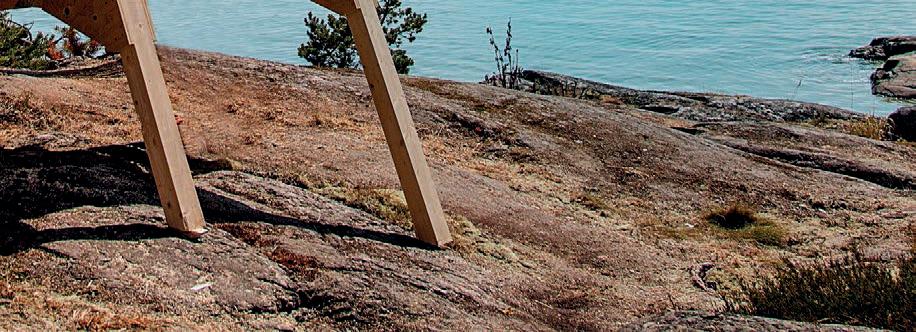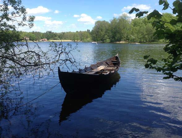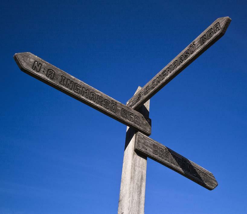 Mitt pek nger följer de bruna tunna böljande linjerna på den gröna terrängkartan där Vikingaledens sträckning är utmärkt. Linjerna visar var vattnet en gång gick. Men de avslöjar mer. Innan vägarna blev raka och asfalterade ck de som valde att färdas långt anpassa sig efter naturen för att nna den enklaste vägen fram. En ås, skapad för 10000 år sedan när isen började dra sig undan, hjälper den som vill vandra genom ett landskap utan vägar. Den höglänta terrängen är oftast mer lättforcerad än de låga och ofta fuktiga mer låglänta områdena. Erfarenheter lika användbara idag som på Vikingatiden.