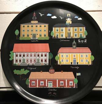 Den fina brickan med Roslagens olika rådhus och tingshuset i Wira bruk finns att köpa på Visit Roslagens turistbyråer och på roslagen.se. För illustrationer och design står Emelie Ek. www.emelieekdesign.com