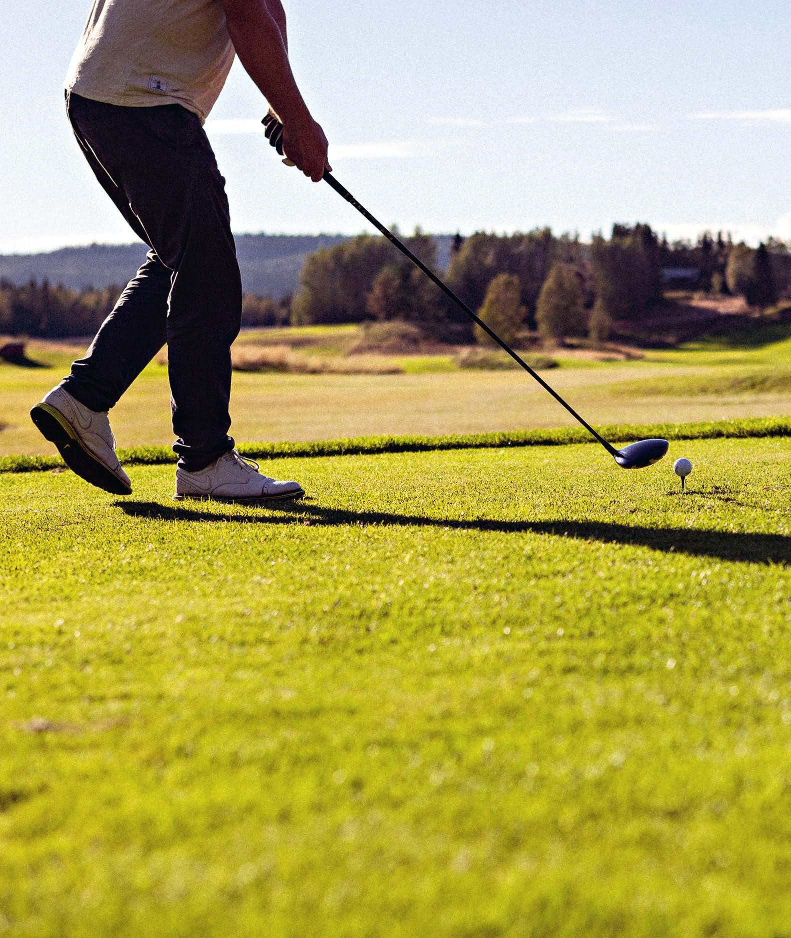 GUL TEE 450 M • RÖD TEE 370 M • PAR 5 • HCP 10 Inspelet är det svåra. Nivåskillnaden mellan fairway och green gör det omöjligt att få fast bollen om du inte slår den mycket, mycket högt. Många av byns profiler är flitiga golfspelare. Täckkjolens skapare Sissi Kewenter, snowboardstjärnan Jakob Wilhelmsson, storslalomfantomen Fredrik Nyberg, OS-hjälten Walter Wallberg och VMguldmedaljösen Ellen Breen är bara några av dem som ofta syns på banan.