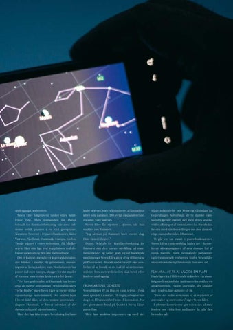indre univers, som er koloniseret af fantastiske idéer om rummet. Det evigt ekspanderende, enorme, ydre univers. Steen Eiler får stjerner i øjnene, når han snakker om Rummet: ”Jeg tænker på Rummet hver eneste dag. Flere timer i døgnet.” Dansk Selskab for Rumfartsforskning informerer om den nyeste udvikling på rumfartsområdet og tæller godt og vel hundrede medlemmer. Steen Eiler giver af og til foredrag på Planetariet – blandt andet for at få sine artsfæller til at forstå, at de skal til at sætte rumsejlene, hvis menneskeheden skal bestå efter Jordens undergang. I rumfartens tjeneste Steen Eiler er 37 år. Han er cand.scient. i fysik med speciale i rumfart. Til daglig arbejder han dog i en IT-virksomhed som IT-konsulent. For det giver mere brød på bordet i Steen Eilers parcelhus. Men han snakker imponeret og med slet