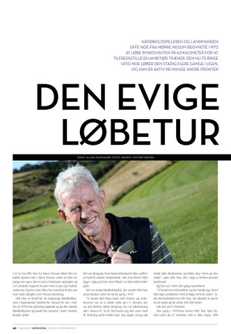 skulle løbe derhjemme og holde mig i form på den måde”, siger Uffe Noe, der i dag er forhenværende landmand. Og han var i form den gang. Kanonform. ”Vi havde test ind imellem, og her havde jeg i hvert fald ingen problemer med at følge med de andre”, lyder det beskedent fra Uffe Noe, der plejede at spurte fra de andre på de sidste 200-300 meter. Løb den på 21 minutter Den gang i 1970’erne kunne Uffe Noe løbe Byskov-ruten på 21 minutter. Det er ikke noget, Uffe