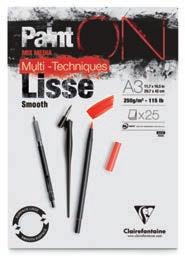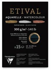 maintenu est immédiatement prêt à l’emploi. La feuille peut se détacher lorsque le travail est terminé et sec. 100 % cellulose, plus ou moins blanc selon le grain (sans azurant optique) et sans acide, le papier Etival permet aux couleurs transparentes de conserver toute leur légèreté et leur éclat. Il est disponible dans 3 types de surface : grain fin, grain classic et grain torchon.