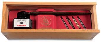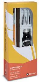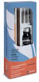Ncoffret Calligraphie Brause Contenu : 1 porte-plume en bois, 3 plumes Brause en métal (46B - 50B - 361B), 3 plumes Bandzug en métal (1 -2 - 3 mm) et 1 flacon d’encre Herbin 15 ml. Prix par coffret. unité réf. €ttc -36% coffret 3-63877 34,95 22,50