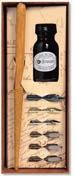 Contenu : 2 plumes Bandzug (2 - 2,5 mm), 1 plume à dessin (511B), 1 porte-plume en bois, 1 pinceau, 1 flacon d’encre noire Herbin 15 ml et 1 livret d’apprentissage avec des pages d’entraînement. Prix par coffret.