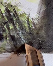 J’ai effectué le dégradé sans faire d’effort pour éviter les auréoles : en chargeant beaucoup mon pinceau, en bougeant ma peinture, en gardant mon papier non incliné… Avec de nombreux autres papiers le résultat aurait été catastrophique. Pas avec celui-ci !
