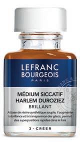 Comme les couleurs, ce médium s’assouplit au malaxage et ne modifie pas la couleur du point de vue de son adhérence et son accroche dans les tailles. Prix par flacon.