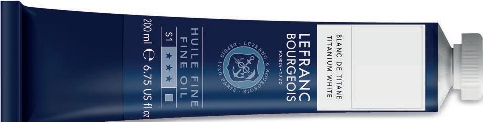 Lefranc travaille à affiner le processus de fabrication pour que la qualité du broyage de notre nouvelle huile fine lui confère une finition satinée, fine et intense. La force de la couleur est la proportion d’une couleur qui domine lorsqu’elle est mélangée à du blanc. La nouvelle gamme d’huiles fines a un pouvoir chromatique très élevé, c’est pourquoi la couleur nuancée à 50 % avec du blanc est illustrée sur le tube.