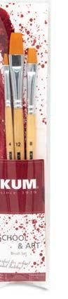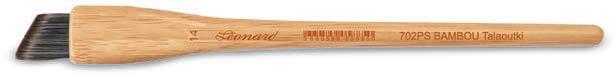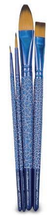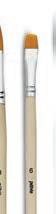 Manche en bois. Poil nerveux et souple parfaitement adapté aux vernis et mediums : gesso, gel et autres auxiliaires. Permet une application homogène. Cette fibre synthétique a une très bonne résistance à l’usure. Tailles 25 et 50 mm + 1 biseauté taille 40 mm. Prix par lot.