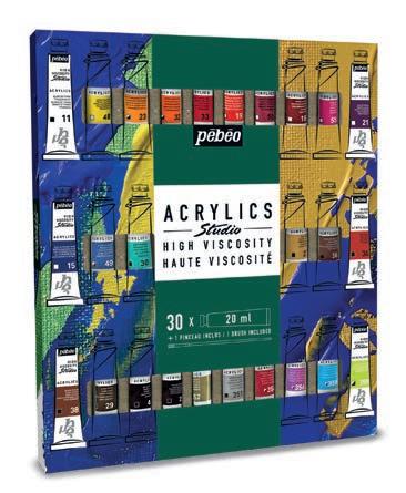 Contenu : 8 tubes de 60 ml : Liste des couleurs : , 2 pinceaux : rond n°2 et plat n°10, 1 feutre fin noir pointe 0,2 mm et 1 carnet d’art en papier recyclé Releaf™ issu de feuilles mortes, format A5, 48 pages, 170 g/m2. Prix par coffret. unité réf. Prix de lancement coffret 9-39489 39,50 €ttc