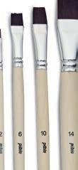 Manche en bois. Poil nerveux et souple parfaitement adapté aux vernis et mediums : gesso, gel et autres auxiliaires. Permet une application homogène. Cette fibre synthétique a une très bonne résistance à l’usure. Tailles 75 et 100 mm. Prix par lot.