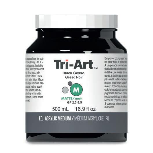 Le gesso noir Tri-Art est une base haut de gamme pour la peinture acrylique et à l’huile. Fabriqué à partir d’une concentration maximale d’émulsion acrylique 100 %, de pigments et de carbonate de calcium, ce gesso noir offre un support au pH neutre qui convient parfaitement aux applications artistiques.