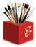 éventail Dimensions des godets 0,1 x 1,5 x 3 cm. Contenu : 18 godets, 1 pinceau réservoir, 1 éponge et 1 palette intégrée. Prix par coffret.