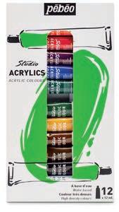 Acrylique d’essai disponible en 15 nuances dont 2 métalliques. Prête à l’emploi, résistante à l’eau après séchage. Pour peinture sur papier, toile, carton, bois, polystyrène… Diluable à l’eau. Couleurs miscibles