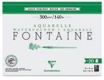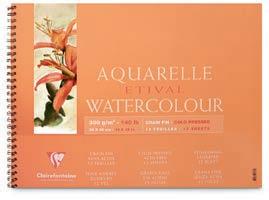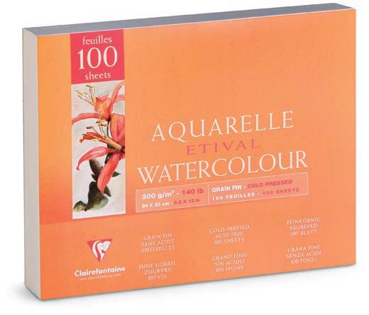 bloc Etival grain fin - 300 g/m2 100 feuilles • Collé en tête. Clairefontaine le garantit 100 ans. Collage spécial. Convient à toutes les techniques d’aquarelles. Facile à travailler, il renvoie particulièrement bien la lumière et permet de garder aux couleurs transparentes toute leur légèreté ainsi qu’une luminosité remarquable. Excellente
