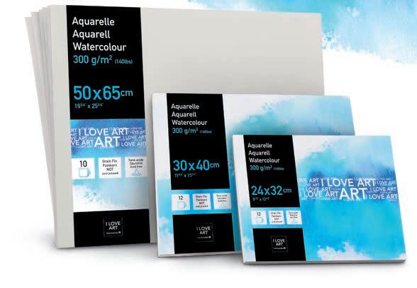Papier aquarelle 100 %pure cellulose • Grain fin • 300 g/m2 • Sans acide, ni azurants optiques pour une parfaite résistance à la lumière et au vieillissement. Idéal pour l’aquarelle, l’acrylique, l’encre et la gouache. Il convient également aux techniques sèches : crayon graphite et de couleur, fusain et pastel. Prix par paquet de feuilles, par bloc ou par rouleau.