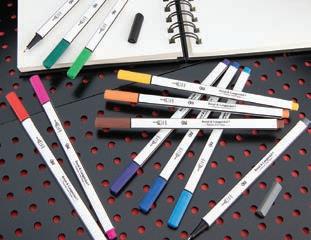Encre à base d’eau • Corps triangulaire • Double pointe : 1 pointe ogive 3,5 mm et 1 pointe calibrée 0,4 mm pour les détails fins, le lettrage et les illustrations.