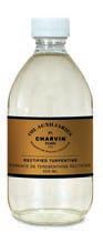 Huile volatile, obtenue par distillation de la résine de certaines variétés de pins, présente un aspect mat. S’emploie pour délayer les premières couches de couleurs du travail d’ébauche sans les altérer. Prix par flacon.