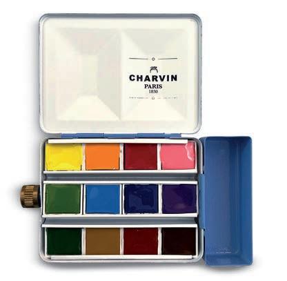 La composition de nuances des coffrets aquarelle Charvin peut légèrement varier.