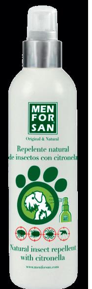 Prírodný repelent na odpudzovanie hmyzu s citronelou. Ideálny roti všetkým druhom lietajúceho hmyzu Chráni tiež pred blchami, kliešťami, plošticami a roztočmi.