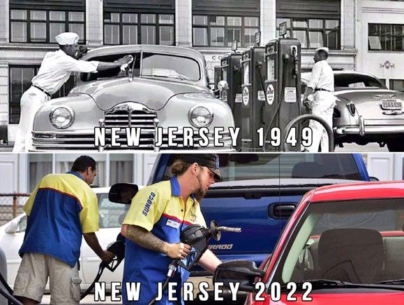 Förbudet kom till eftersom alltför många som tankade själva drog utan att göra rätt för sig och fort farande, 73 år senare, får man inte tanka på egen hand i New Jersey. Försöker du är det hela 5 500 kronor i böter men ändå ver kar kunderna nöjda.