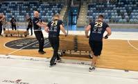 Magazin24 är med under en fredagseftermiddag när golvet läggs i rekordfart, inför kvällens hemmamatch mot Borås Basket.