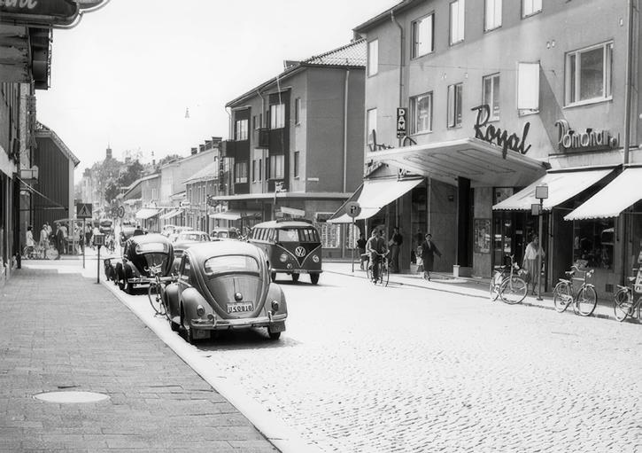 Bilden visar två fastigheter belägna på Drottninggatans östra sida i höjd med nuvarande Kungsörs bibliotek. Byggnaderna revs i slutet på 1970-talet och har numera ersatts av en affärslokal för ICA Torghallen.