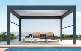 Fristående eller vägghängda, vattentät väv, eller svängbara aluminiumlameller som tak – du väljer.