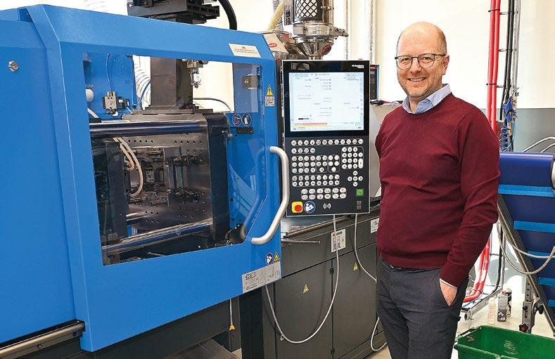 Även om det generellt är skakiga tider för de esta just nu menar Jonas att Memo bara växer och växer. – Vi ökar hela tiden, gamla och nya kunder kommer ständigt med nya beställningar. Vi omsatte 69 miljoner förra året och siktar på 100 miljoner 2027, säger Jonas. Jonas, som ursprungligen kommer från Hässleholm, yttade norrut till Eskilstuna där han jobbade på Stiga och Kungsörs Plast innan han kom till Memo 2017. Vi tar en promenad genom företagets olika delar och får inte fotografera på era ställen där produkter som ännu ej är o ciella får visas upp. Jonas berättar på sin lugna skånska att man hela tiden vill vara i framkant och ha marknadsledande kunder på sitt område vilket sporrar till att fortsätta driva på utvecklingen och att vara bäst. Bakom Jonas lugna fasad lurar en vass industriman som inte nöjer sig med att vara tvåa. Jonas visar också stolt upp två nya maskiner som kom i dri bara för någon månad sedan. Stora investeringar som e ektiviserar och driver framåt. Råmaterialet – plasten – sugs in i maskinen och hettas upp till 250 grader in i verktyget som formar produkten, kyls och sedan ploppar ut på andra sidan.