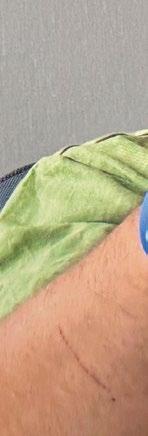 sex timmar. Läkarna lyckades gå in via ljumsken och med en tunn titantråd fylla aneurysmet med titan. Jag har kvar denna titanboll som trycker på hjärnstammen. Till följd av trycket i huvudet ck jag även tre infarkter i lillhjärnan. Tiden e er operationen är suddig; han beskriver att han inte kunde äta, pappa ck mata honom.