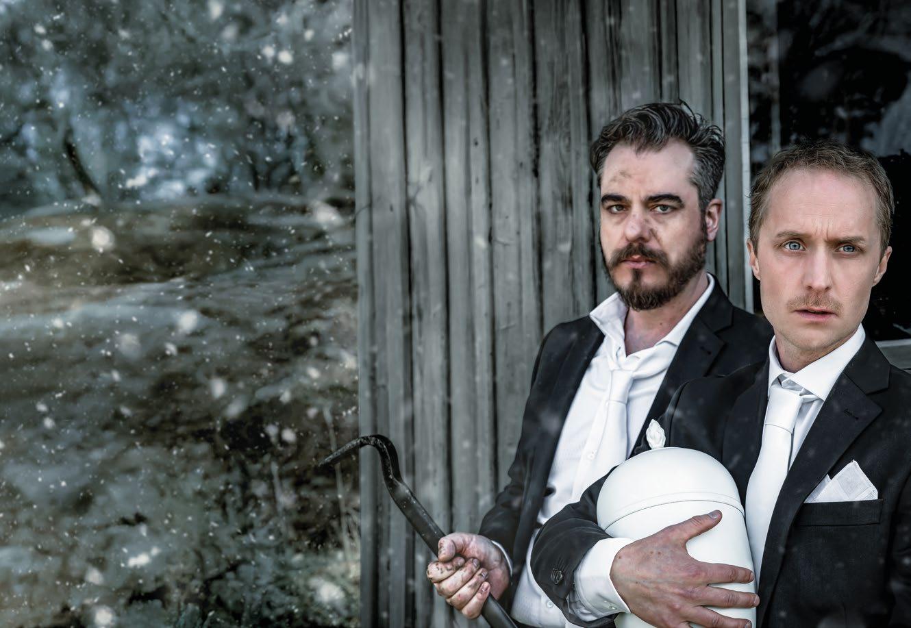 Så beskriver regissör Mikael Kallin sin nyskrivna föreställning Björnön. Och rätt roligt är det ju, minst sagt, i krockarna mellan 1990-tal och nutid, drama, komedi och musik, pensionerade finnar som fixar hoppbacke, en föredetting till jubileumsgeneral som försöker finna sin nya plats i världen, snygga tjejen man spanade på i smyg och mamma som slutar röka och börjar jogga. Fast fortsätter smygröka. Och jogga.
