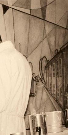 Martin Möller visar här ett fantastiskt måleri skildrande människor i harmoni med miljö. Hanns Karlewski, mångkunnig designer visar kollage och skulptur i brons och trä.