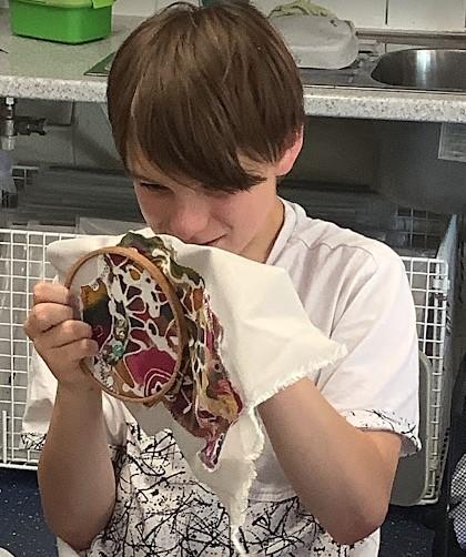 Pupils have used the resist method of decorating and dyeing fabrics using hot wax and brightly coloured dyes called Batik. They have learned different ways on how to join fabrics together ; by using pins , hand sewing and machine sewing .