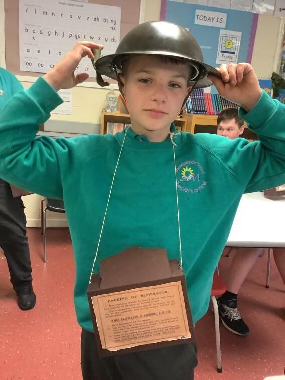 Pupils have also been considering what life was like in the trenches for soldiers. Howthey ate, slept and were on guard with their rifle at all times. They have been busy making gas masks and wearing WWI helmets to re-enact the life of a WWI solider.