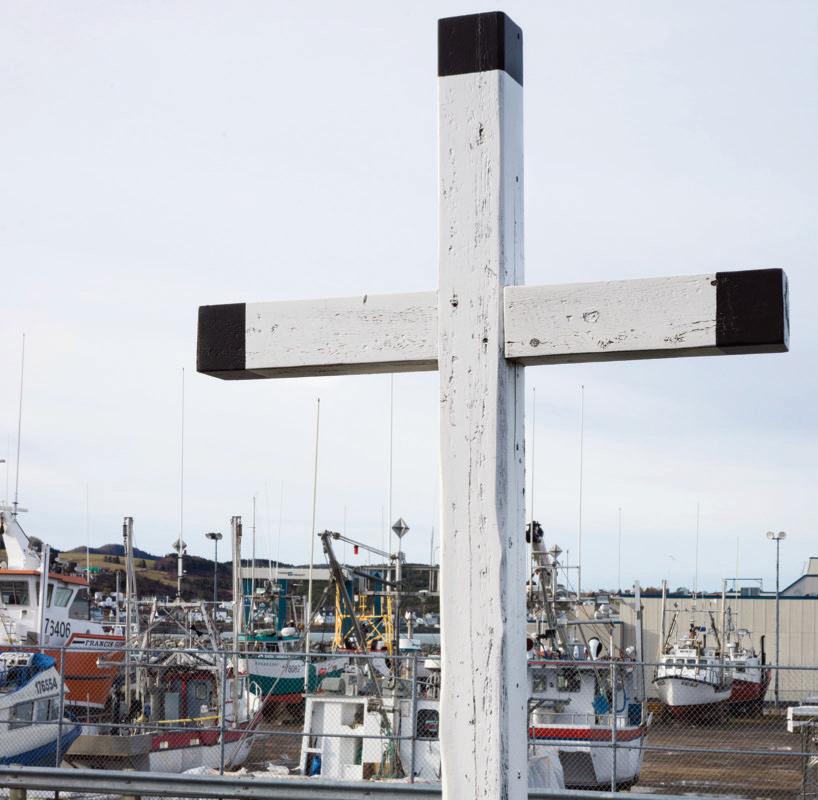 Croix face au port à Rivière-au-Renard, 2022. Elle sert à bénir les bateaux de pêche.