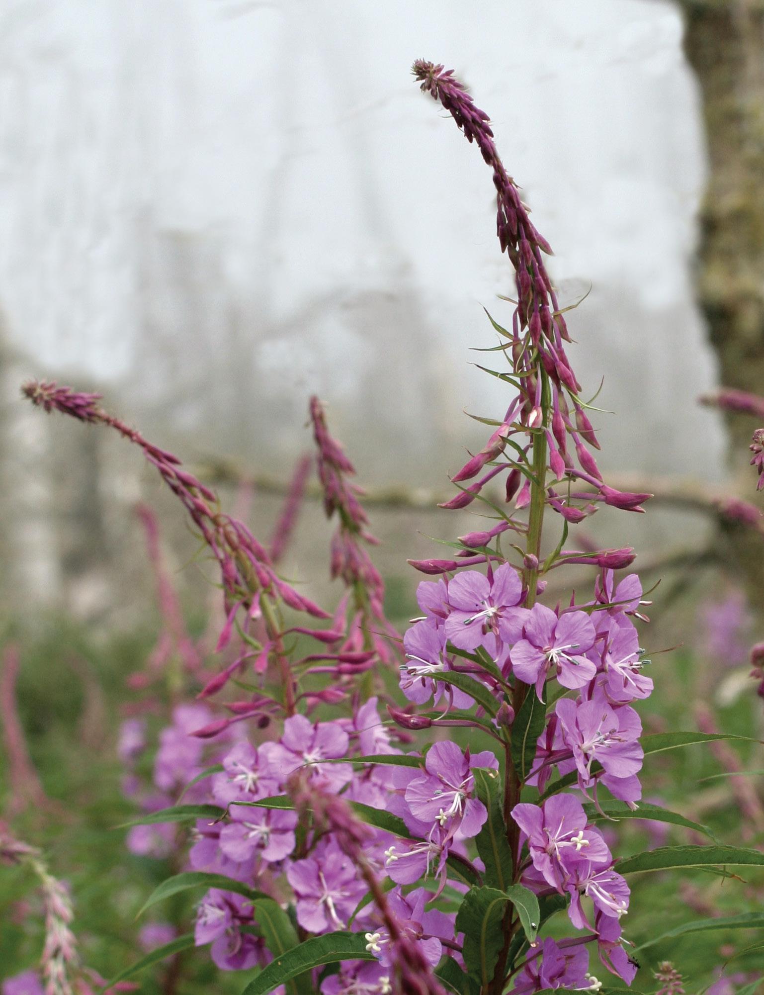Épilobes (Epilobium angustifolium) sur l’île Bonaventure, parc national de l’Île-Bonaventure-et-du-Rocher-Percé.