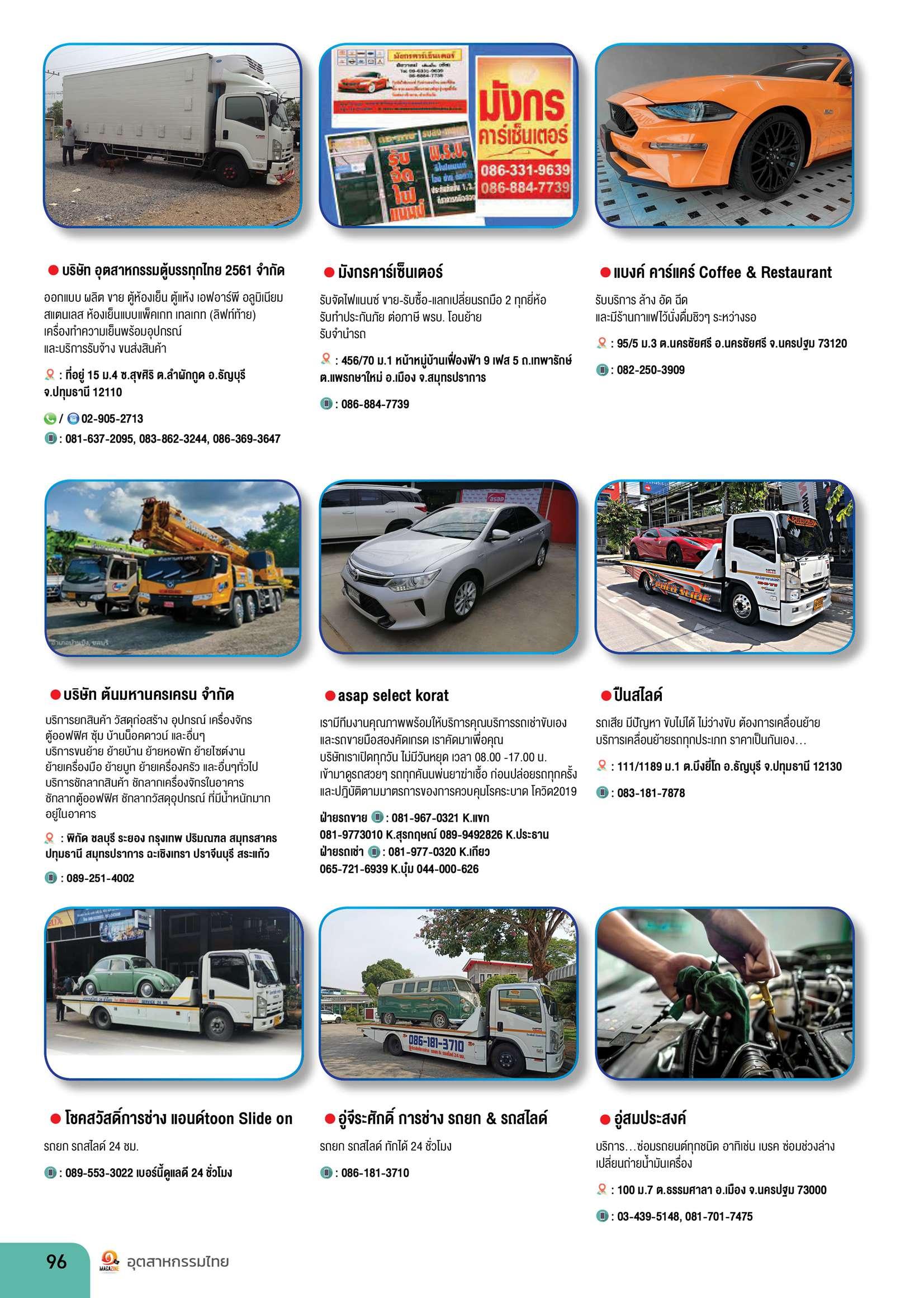 กลุ่มื่ธุรกิจเคร่�อง จ่กรกล, กลุ่มื่ธุรกิจ รถยนต์, กลุ่มื่ธุรกิจไฟื้ฟื้้าและไฮโด้รลิค, กลุ่มื่ธุรกิจเหล็กและอล้มื่ิเน่ยมื่, สินค้าและบริการด้้านธุรกิจ เป็นต้น เพี่�อใ ชีสาหร่บเป็นค้่มื่่อตด้ต่อ สาหร่บภูาคอุตสาหกรรมื่ได้้เป็นอย่างด้่ หน่วยงาน องค์กร บรษ่ที่ ห้าง ร้านใด้ที่่�สนใจจะลงข้อมื่้ลสินค้าและบริการของที่่าน สามื่ารถตด้ต่อได้้ที่่�