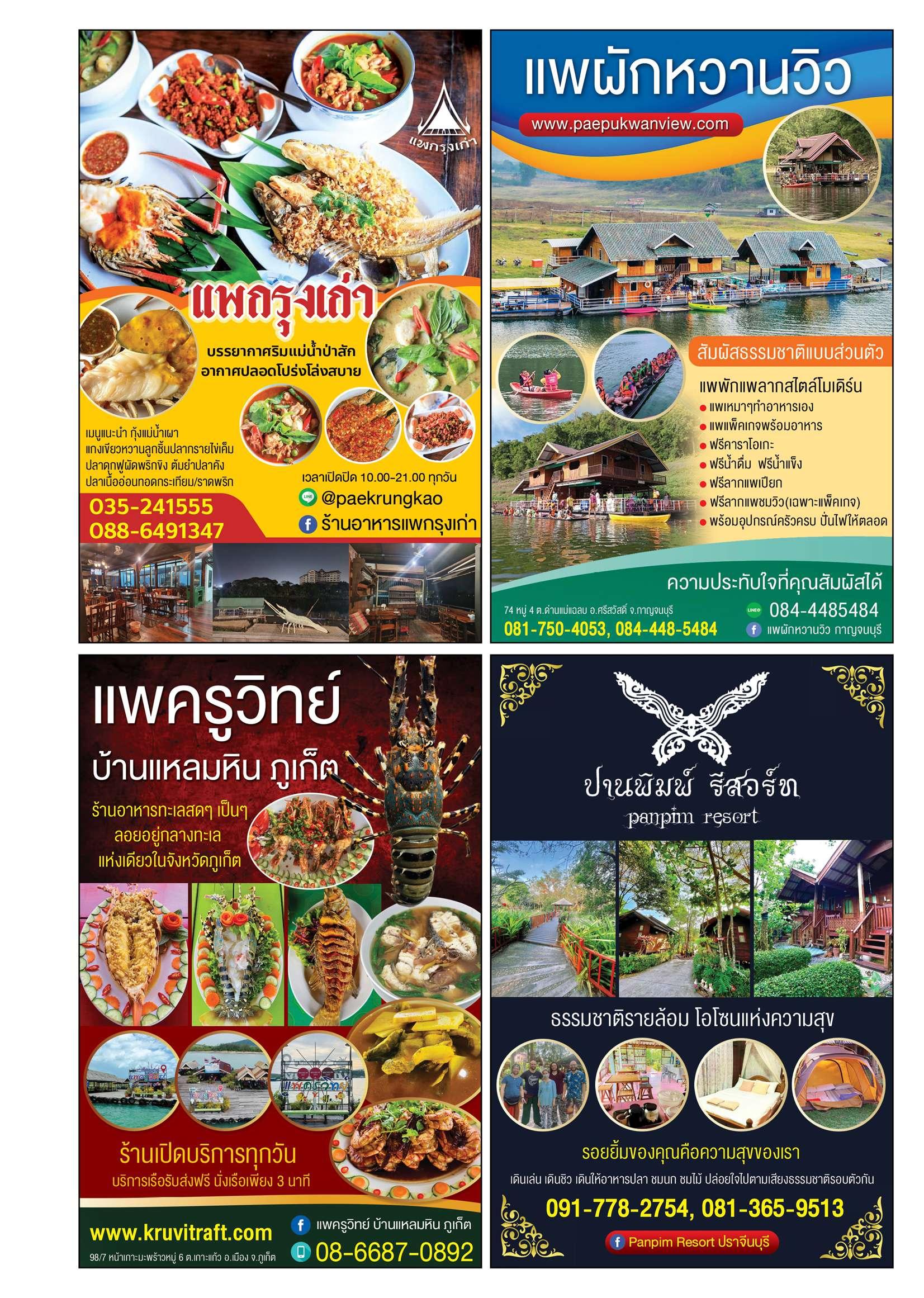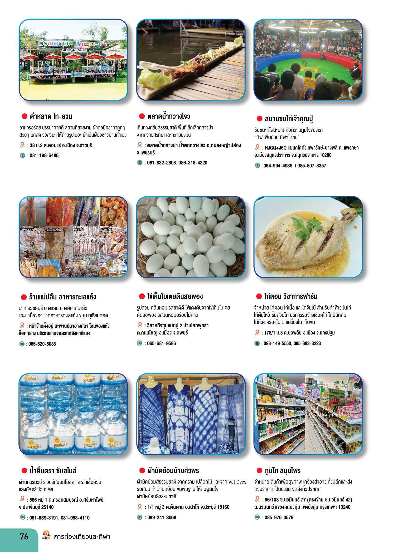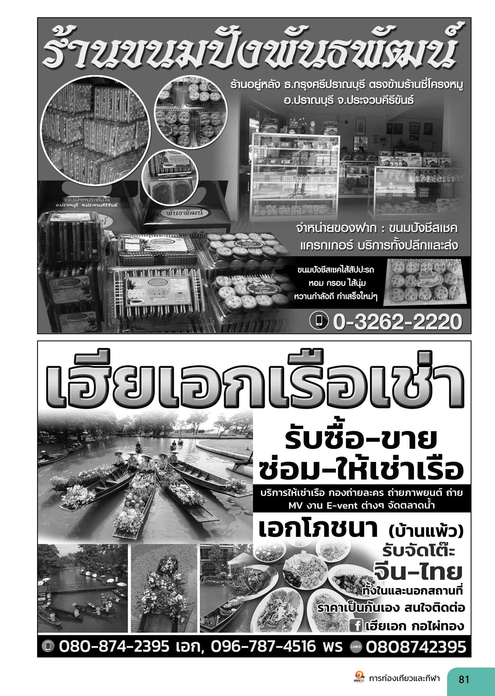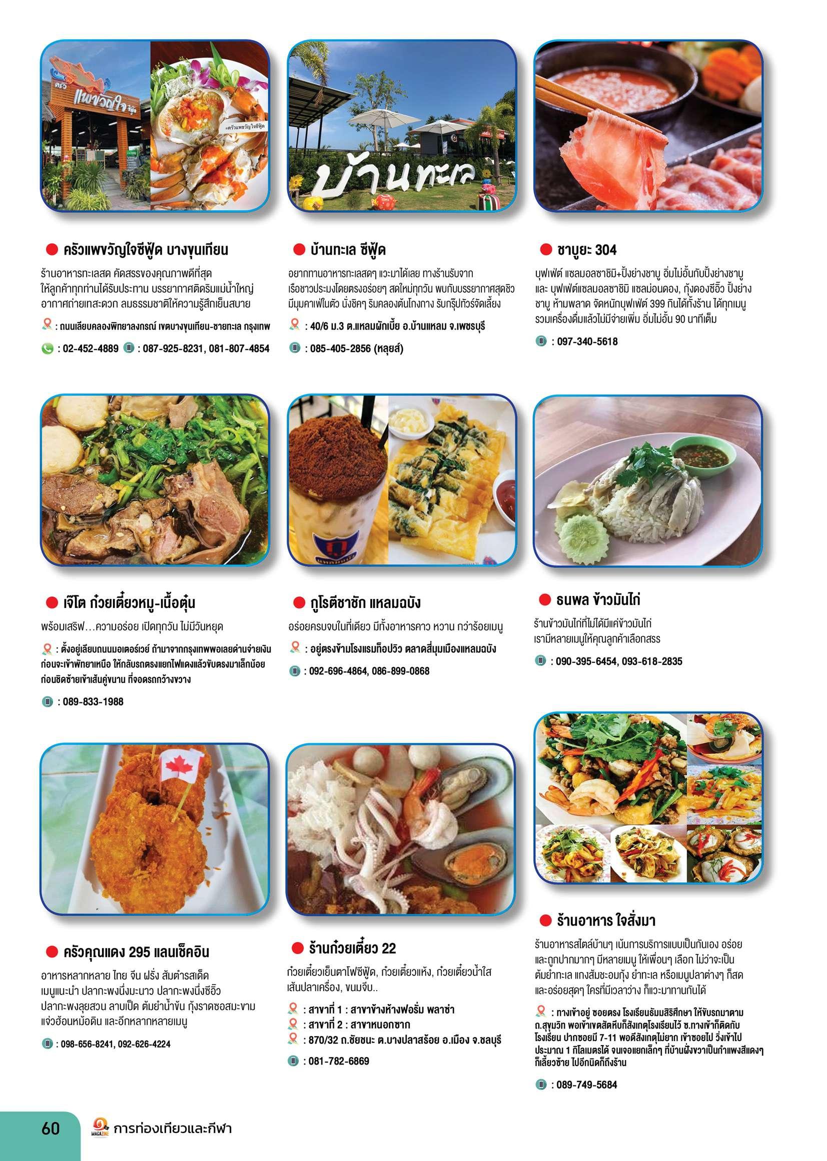 สาม่ารถื ต์ด้ต์่อได้้ที โทร. 0-2380-3709-10 > กรุุงเทพฯ ติิด ‘TOP 5’ เมืืองท่่องเท่่�ยวยอดนิิยมื 10 > “ภููเก็ต และ ภูาคอีีสาน” ติิด 50 สถานิท่สุดยอดของโลก 12 > ข่่าวสารุการุทอีงเที�ยว 37 > คู่มืือีบรุิการุนักทอีงเที�ยว แนิะนิำ ร้้านิอาหาร้ คาเฟ่่โดนิใจ โร้งแร้มื ร้่สอร้ท่ สนิค้าของฝาก, สนิค้า OTOP 41 CONTENTS TOURIST&TRANSPORT แนิะนิำสนิค้าและบร้ิการ้ติ่างๆ UPDATE! 2023 ด้้านการุทอีงเที�ยวและกีฬา 57