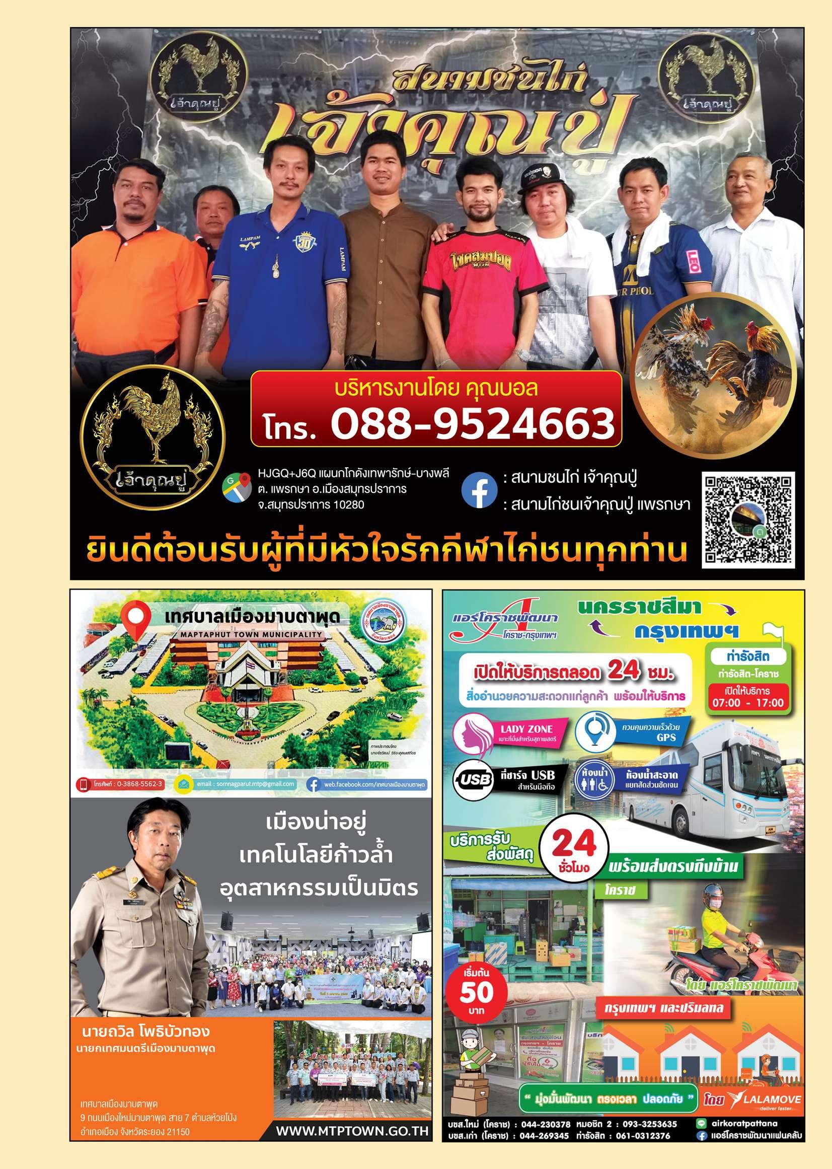 บริษัท กิตวรินทร์ อาร์ตแอนด์มีเดีย จ�ำกัด ส�ำนักงำน 32/67 ถ.สุขุมวิท ต.ปำกน�้ำ อ.เมือง สมุทรปรำกำร 10270 0-2380-3709-10 magazine1nai@gmail.com www.magazine1nai.com magazine1nai 1Nai Thailand ผู้ให้บริกำรโฆษณำ ฉบับพิเศษ : ไทสมุทรเดลี่ ที่ปรึกษา พ.ต.ท. สมชำย ศรลััมพ์, มำลั ชื�นส�ำอำงค์์ ฝ่่ายกฏหมาย นงค์รำญ นันชนะ ผู้้�อานวยการ วริยำ แย้มเพียรวัฒนำ บรรณาธิิการบริหาร กิตต ฉัันทกิจนกลั กองบรรณาธิิการ สุเชำว ศรลััมพ , สุชำดำ พุกทรัพย ผู้้�จััดการทั่วไป ปิยพร ม่วงศร ผู้้�จััดการโครงการ นภำพร ดรุณพันธ์์ ฝ่่ายประชาสัมพันธิ ประทุมมำศ สนทอง, จีรวรรณ ปลัั�งเปลั่ง, ยุวด พะบ�ำรุงษ ศริวรรณ ศริพรววัฒน์, วรนุช สถิน, ทวินตรำ ชื�นกมลั ฝ่่ายศิลปกรรม พลัำกร ค์�ำโค์รตสูนย์, ศักดิชัย รันจตรัส ฝ่่ายธิุรการ ศุภำกร ฉัันทกิจนกลั ณัฐนิช เหมจั�นเพ็ชร ฝ่่ายจััดส่ง อรุพงษ รุ่งเรือง, อรรถพลั นำรลัำ