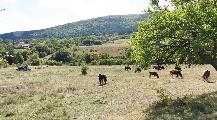 70 Животновъден дневник Рязък завой към животновъдството Тони Кичуков: Започнахме да гледаме животните като домашни любимци, но не се прави така. Това е бизнес. Тони Кичуков работил в София като IT специалист, но преди 5 години прави ря зък завой, за да избяга от напрегнатото ежедневие в големия град. Затова се об ръща към животновъдството, природата, селския начин на живот. С жена му първо си закупили конче и място близо до София. После се насочили към месодайни говеда без да знаят нищо за тях. В Румъния една заплодена юница струвала около 1800 евро – цена, непосилна за прохождащите ентусиасти в животновъдството. Тогава се запознали с каубой от САЩ, който има ранчо. Той им препоръчал да си вземат женски телета и добър бик. Взели пасище под наем. „Решихме, че ще живеем на пасището заедно с животните – живяхме в каравана 3 месеца без ток и вода. После От компютритедо живота на село се преместихме на постоянно място. Увеличихме животите през годините. Влюбихме се в това място. Харесва ни да сме тук и да се занимаваме с животните. Обичаме ги, познаваме всяко едно. Започнахме да ги гледаме като домашни любим ци, но не се прави така, това е бизнес“, разсъждава фермерът.