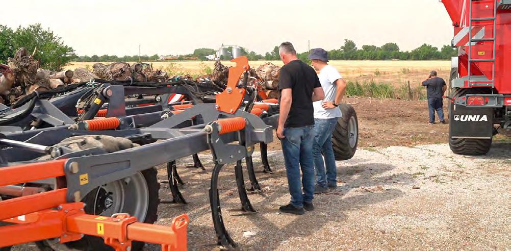 имаме сечка за нарязване на органичните остатъци на малки парчета, за да бъде направена почвената подготовка много по-добре. Машината разполага с тежък уплътняващ валяк и