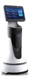 Immediately available features include information, promotion, and security. In a warehouse, robots can deliver goods from a counter to a display shelf.