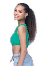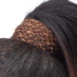 A leave out is your own hair that you leave before adding extensions. Earlier we mentioned that you should leave some of your hair to cover the fringe of a half wig. No leave out means you do not leave any of your hair. No leave out styling has an advantage of having no need to match wig hair texture with your own hair, so you can choose various curls of half wigs. The technique requires you to pull the half wig as front as possible to maximize the coverage of wig hair to hide the fringe of the half wig.