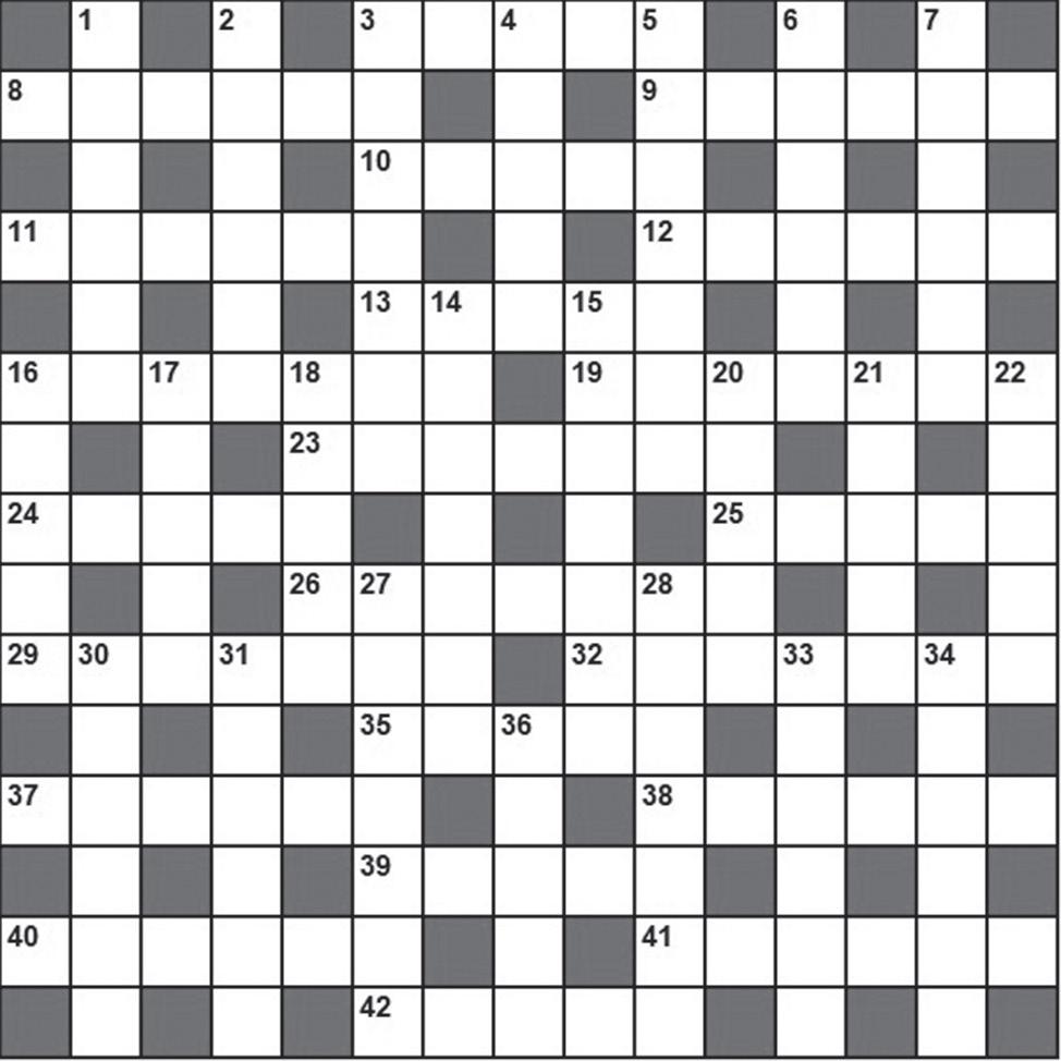 По горизонтали 3. «Лапки», поджатые самолётом. 8. Налог на блюда, приносимые официантом. 9. Человек-фонарь. 10. Сосед гипотенузы. 11. «Собачья» звезда. 12. Мебель «под градусом». 13. Скальп манекена. 16. Хозяин Муму, который всё время что-то не договаривал. 19. Повар, освоивший блюда только из крупы. 23. Парусина«непромокашка». 24. Горячительное для сластён. 25. Великий художник с «овощной» фамилией. 26. «Бумажное рукоделие». 29. Видимая привязанность собаки к хозяину. 32. Потеря, попавшая в чужие руки. 35. Погонщик телят в неизвестном направлении. 37. Гримаса с кривлянием. 38. Экономический недуг. 39. Амурные интриги. 40. Стройматериал для сказочного дома. 41. Небьющийся предмет спора. 42. Затея прохиндея.