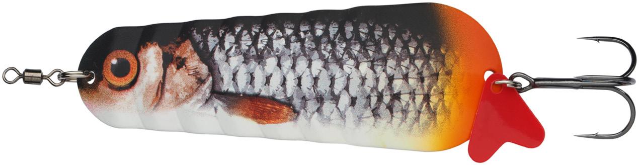 bäst med Origami Blade. Två betestyper med mycket rörelse och ljud. Det viktiga är att inte glömma pauserna. Det är ofta när betet centrerat sig under ishålet och nästan står still som huggen kommer.
