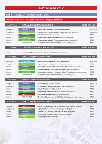 DAY AT A GLANCE DAY 2 – THURSDAY 10TH NOVEMBER , 2011