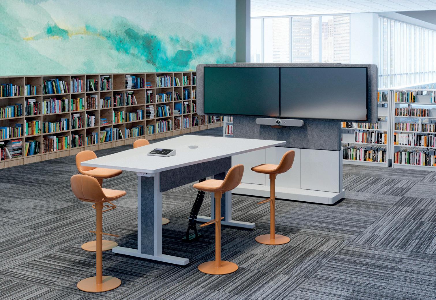 Forum products continue to include innovative AV integration features such as Leverlock (toolless AV device mounting) and a properly sized display shroud that is outfitted with acoustic fabric to keep the noise levels and audio reverberation to a minimum to ensure the highest quality audio experience for both inperson and remote audiences in open spaces.