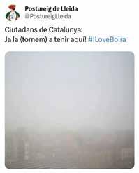 Si hi ha un aspecte que caracteritza a Lleida en aquesta època de l’any aquest és, indubtablement, la boira. L’esmentat fenomen meteorològic, a Ponent, és un tret distintiu dels mesos de desembre i gener, tot i que la boira ja comença a treure el cap al novembre. De fet, el passat dia 2 ja va aparèixer per primer cop en aquesta temporada. La mitjana anual deixa als lleidatans 52 dies emboirats. No és una xifra excepcional i tampoc és l’únic lloc amb boires, però en nombre d’hores i encadenament de dies consecutius sense veure el sol Lleida sí que esdevé la zona amb més boira de Catalunya. I és que a Lleida ... tenim més boira que ningú!