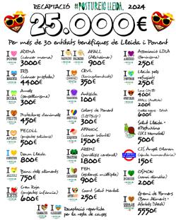 Postureig de Lleida recapta més de 25.000 euros el 2024 per a més de 30 entitats solidàries de Lleida i Ponent!