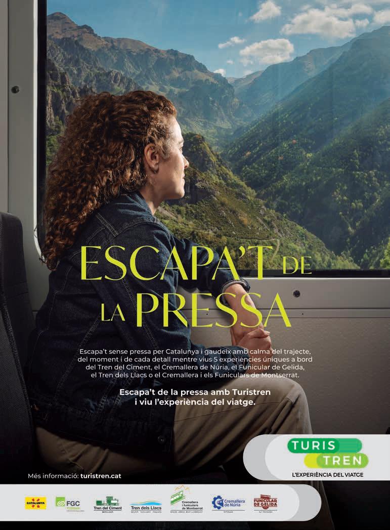 població a la Vall de Núria. El Tren del Ciment , a la comarca de l’Alt Llobregat, forma part de la història de Catalunya, i ara transcorre per la ruta que en el passat unia la fàbrica de ciment Asland, a Castellar de n’Hug, amb Guardiola de Berguedà. El Tren dels Llacs , connecta la ciutat de Lleida amb La Pobla de Segur mitjançant un tren històric i un tren panoràmic, des de la plana fins al Prepirineu, creuant majestuosos embassaments i serralades. I l’històric Funicular de Gelida , a la comarca de l’Alt Penedès, un dels transports més entranyables i desconeguts de Catalunya. D’aquesta manera, es pot descobrir el territori d’una manera més sostenible, apropant a la ciutadania a espais plens de natura, cultura i tradició en un viatge que es converteix en tota una experiència.