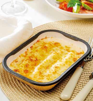 Canelons de carn rostida gratinada en format individual: la nova recepta de canelons de carn rostida incorpora un gratinat d’emmental i mozzarella que aporta cremositat i un daurat durador.